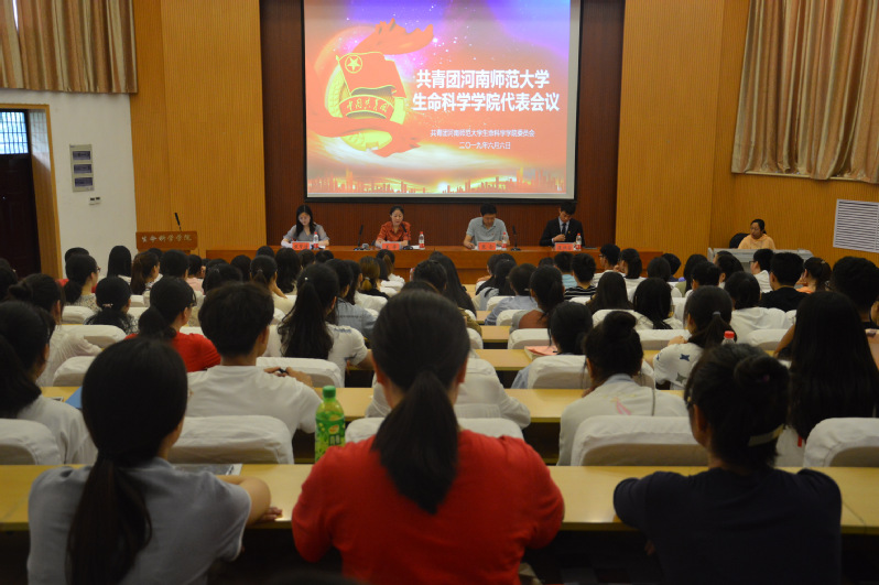 6月6日中午,共青团河南师范大学生命科学学院代表会议在生物报告厅隆重召开。校团委副书记张合、院团委书记王芳、院团委副书记、学生会主席、团委委员代表、团支部委员代表、学生团员代表及候选人预备人选等180余人参加此次会议。会议由院团委书记王芳主持。