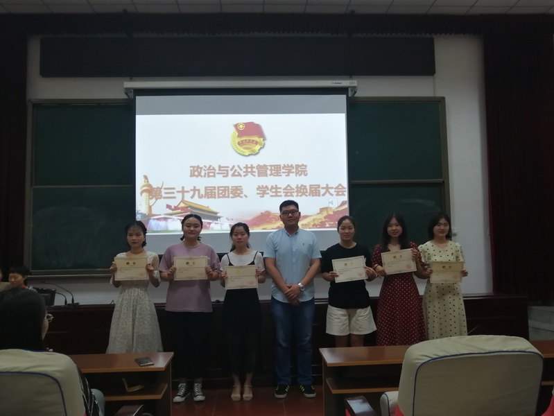 6月14日中午,政治与公共管理学院团委、学生会换届大会举办。学院党团负责人及第三十七届、三十八届团学代表,新一届全体团学干部参加了换届大会。