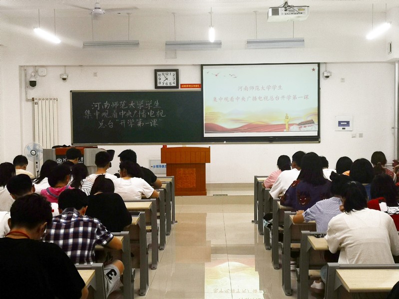 以五星红旗之名,燃中华儿女之情。2019年9月1日晚,国际教育学院部分学生分别在东综412和402教室集中观看中央电视总台录制的《开学第一课》,我院党总支副书记白丽老师、团委书记韩舒老师、2018级辅导员孔若阳、2017级辅导员武光辉到场参加本次活动。