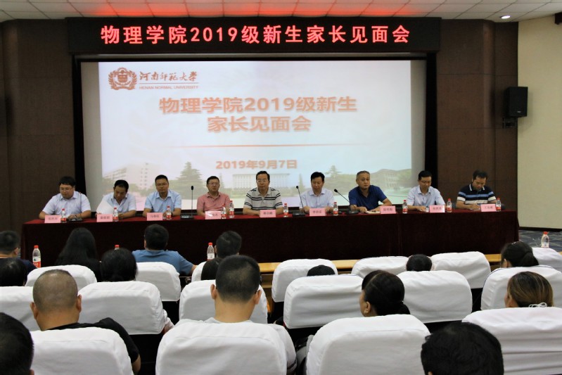 为增强家校合育效果,物理学院于9月7日在物理北楼报告厅开展2019级新生家长见面会。出席见面会的领导老师有院长杨宗献、学院党委书记李清富、党委副书记陈明银、副院长曹俊杰、副院长马春旺、副院长焦照勇、光学与光信工程研究所所长秦朝朝;材料物理研究所所长王显威以及团委书记、新生辅导员、各位新生班主任。