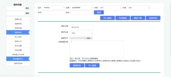 1、录入综合考评成绩:由年级辅导员,将学生综合考评成绩按“综合考评成绩导入”(录入模板:附件2)录入高校学生综合服务平台(复制粘贴数据到平台即可),录入分值小数点后保留三位数字。