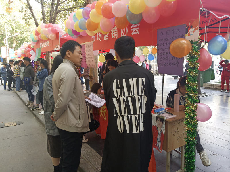 为传承社团的特色文化,提高社团创造力,10月19日至20日,我校于西区主干道进行了为期两天社团招新活动“百团大战”。挂靠学院的Cube魔方社、普天乐足球社、市场营销协会和经济贸易协会四大社团在百团大战中各展风采,广纳新才。