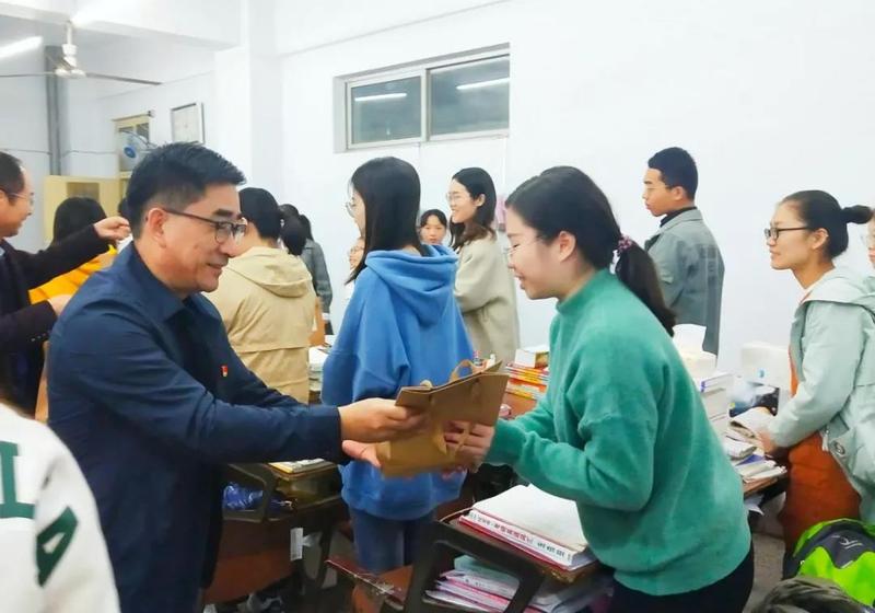 文学院党委书记王俊杰一一向备考学生送上了充满温暖的福袋,鼓励考生一是要增强信心,持之以恒,顶得住压力,耐得住寂寞,树立必胜的决心;二是要合理规划,有序备考,制定并实施科学的复习计划,提高学习效率;三是要加强锻炼,劳逸结合,健康的身体和积极的心态是奋斗的根基。文学院党委副书记高飞针对考研学生的学习提出了相关建议。