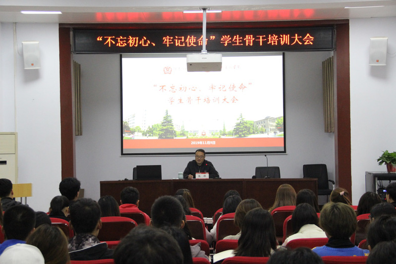 为进一步提高学生骨干的个人能力和综合素质,加强学生骨干服务意识,11月9日下午,马克思主义学院于平原楼108召开“不忘初心、牢记使命”学生骨干培训大会。本次活动由学院党总支副书记张锋主讲,辅导员牛昱斐、研究生及本科生班委、学生会全体成员参与。