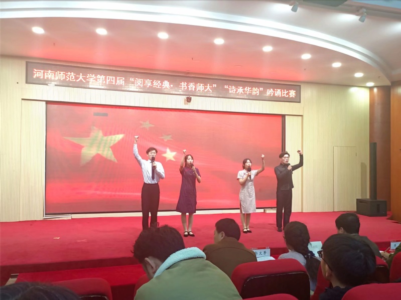 为感受经典文学魅力,激发学生爱国向上情怀,美术学院四名选手于11月25日在河南师范大学思政平台参加以“千古悠悠爱国意,激扬文字少年情”为主题的“诗承华韵”中华传统经典诗词吟诵比赛。
