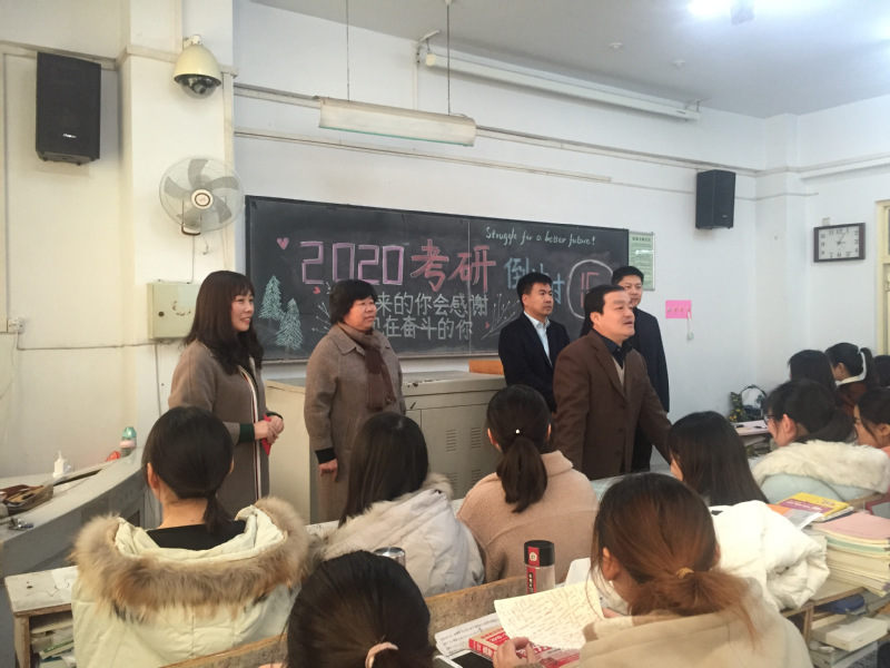 考研初试临近,考研学子进入备考冲刺阶段,为鼓舞考研学子士气,为同学们加油鼓劲,增强信心,12月5日下午,外国语学院在田家炳楼402教室举办“风雨考研路、一颗石榴心”考研慰问活动,校学生资助服务中心主任、学生处副处长赵红杰、校学生处副处长康海军、院党委书记宋霞、院党委副书记曹崇、2016级辅导员付长华、李晓参加此次活动。