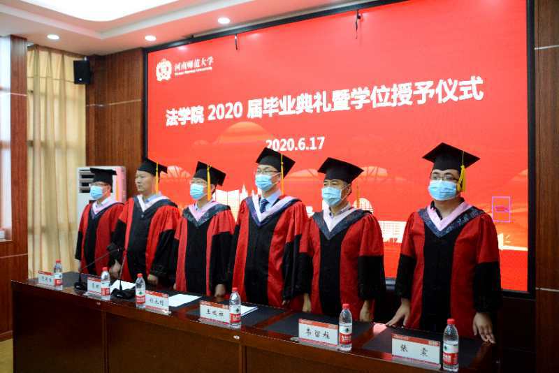 6月17日上午,法学院举行2020届毕业典礼暨学位授予仪式。法学院党委书记任永利、院长王鹏祥、党委副书记葛照金、副院长韦留柱、副院长于庆生、副院长张震、教师代表胡光、研究生工作负责人和研究生辅导员徐晓、各年级辅导员及2020届全体毕业生在现场和云端共同参加了这场典礼。典礼由党委副书记葛照金主持。
