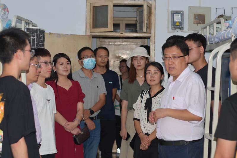 三、突出“家人意识”。温暖国教,从不缺席。因为今年新生住宿楼层高,家长又不能入校,学院租了四辆电动三轮不间断往返运输,同时招募志愿者300余名,细致周到、真诚热情地帮助新生搬运行李,得到新生与家长的一致认可。迎新期间,国际教育学院党总支书记田小勇、院长陈运香、党总支副书记白丽、副院长刘海涛深入学院迎新现场与新生宿舍,与新生亲切交流。田小勇欢迎同学们考入师大,希望大家在常态化疫情防控的条件下珍惜学习机会,做好防护,尽快适应大学阶段的学习和生活、融入国教大家庭;希望大家强化安全意识,做到“非必要不外出”;希望每个宿舍同学团结友爱,拧成一股绳,营造一个团结和谐的宿舍氛围,争做学霸宿舍,自我教育、自我管理、自我服务,脚踏实地,砥砺奋斗,努力在实现中华民族伟大复兴的中国梦的生动实践中放飞青春梦想!