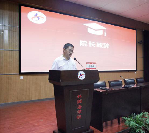 会议伊始,刘国兵院长致辞。他对外国语学院2020级研究生表示热烈欢迎和诚挚祝贺,并介绍了学院的基本概况。他提出,站在人生的新起点,新生们想要让自己的研究生经历更具意义,需要做到三点:一要崇德修身,学会做人,要树立高尚道德情操,明辨是非善恶,以德为本,学会感恩;二要求真务实,学会做事,要明确人生目标,合理规划时间,脚踏实地,切实肯干;三要平心静气,学会做学问,要勤于思考,学贯中西,追求“大学问”,练就“大视野”,养成“大格局”。刘院长的谆谆教诲让新生们更加明确了自己的人生方向,学生们纷纷表示受益匪浅。