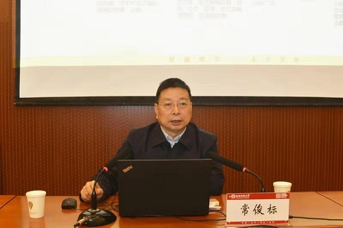 11月26日上午,常俊标在生命科学学院报告厅讲授专题思政课,生命科学学院师生近二百余人参与学习。报告会由生命科学学院党委书记丁笑生主持。