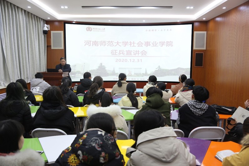 为激发青年学生参军入伍、报效祖国的热情,扎实推进大学生参军入伍工作,12月31日下午,社会事业学院在崇智楼503室举办征兵宣讲会,退伍士兵大学生代表、各年级学生积极参与。学院党委副书记林安春担任主讲人。