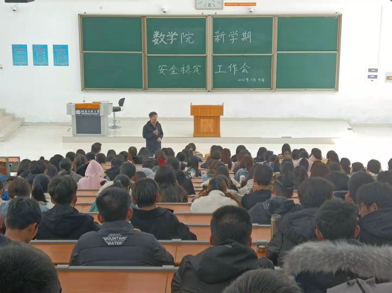 3月4日中午,数学与信息科学学院在东区综合楼102教室召开新学期安全稳定工作会议。院党委副书记吴耀武、各年级辅导员、全体党员、学生干部和宿舍长参加本次会议。