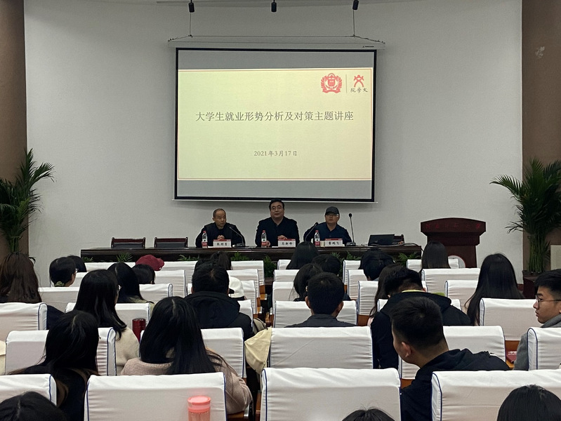马新峰围绕2021年大学生就业形势分析、当前大学生就业时存在的问题、大学生该如何实现顺利就业三部分进行专题讲解。他从就业率、就业地区流向、就业单位来源、就业行业分布、就业薪资统计五个方面详细分析我校近三年毕业生的就业情况,并根据历年就业信息的变化对比,加深学生对当前就业形势的认识。随后马新峰指出,当前部分毕业生存在就业形势不了解、就业观念有误区、就业能力有短板、就业心理难调适、就业陷阱难避开等问题,建议学生不断完善专业技能、培养敬业精神、提升处事能力以实现顺利就业。