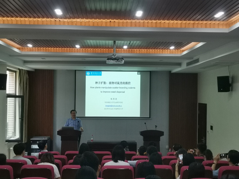 5月22日上午,应生命科学学院邀请,华中师范大学张洪茂教授在生物东楼报告厅作题为“种子扩散:植物对鼠类的操控”的学术报告。报告由学院副院长王海磊主持,学院相关专业师生共80余人参加了此次报告会。