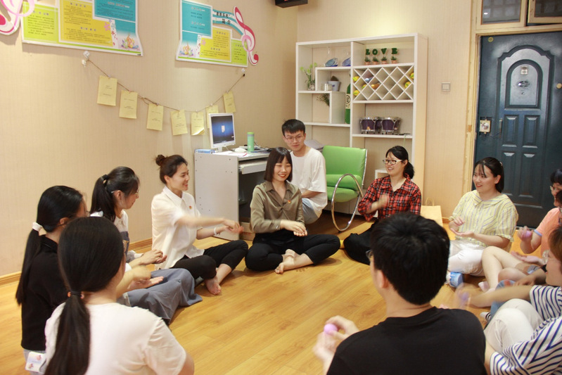 活动伊始,师生围成一个圆圈,席地而坐。在乐器对话和情绪表演环节中,师生选择乐器进行自我介绍,并以独特的方式表达自己的心情,让彼此建立起初步的联系。随后,在音乐链接互动环节中,师生通过沙蛋传递游戏增进了对彼此的了解、提升了团队默契,于欢声笑语中逐渐放松。随后,伴随着舒缓的音乐,师生互动,分享、交流了近期人际交往中遇到的种种困惑和提升人际交往能力的途径。活动最后,同学们以“我想带走”为主题畅所欲言,袒露心扉,表达出内心最真实的想法。付长华老师提出我们应将尊重他人、真诚待人、学会赞美等人际交往小妙招内化于心、外化于行,做到爱己及人,爱人如己。唐新老师指出我们要大胆探索,在实践中找寻适合自己的人际交往方法,构建良好人际关系,促进身心健康。至此,此次团体辅导活动圆满落下帷幕。