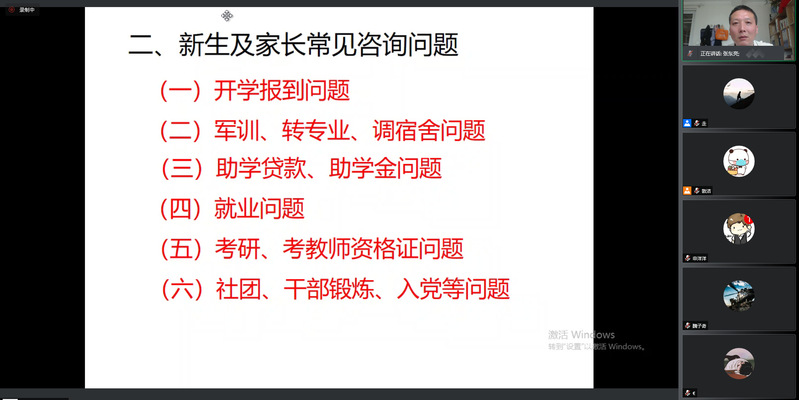 8月22日下午,计算机与信息工程学院在线上举行2021年迎新对接工作培训会。院党委副书记张东亮担任主讲,相关辅导员及180名学生志愿者参加会议。会议由院团委副书记敦洁主持。