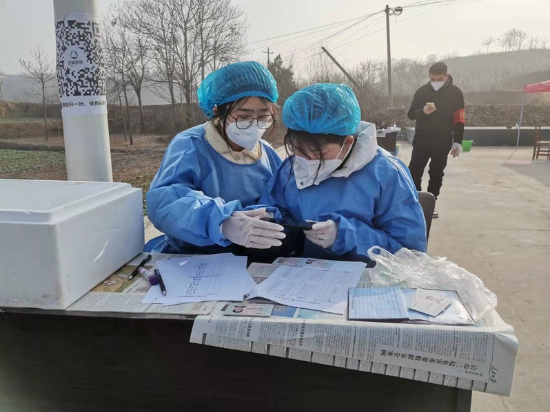 一切以人民生命安全至上,以服务人民为宗旨。2020级翻译专业王嘉晨积极参与到鹤壁市鹤山区鹤壁集镇大吕寨村抗疫志愿服务中,在紧张的防疫工作中有条不紊地展开登记信息、排查外来人员等工作。2020级英语专业李嘉琦在课业之余,积极参加社区疫情防控工作。她说道:“众志成城,守望相助。没有一个冬天不会过去,没有一个春天不会到来。”