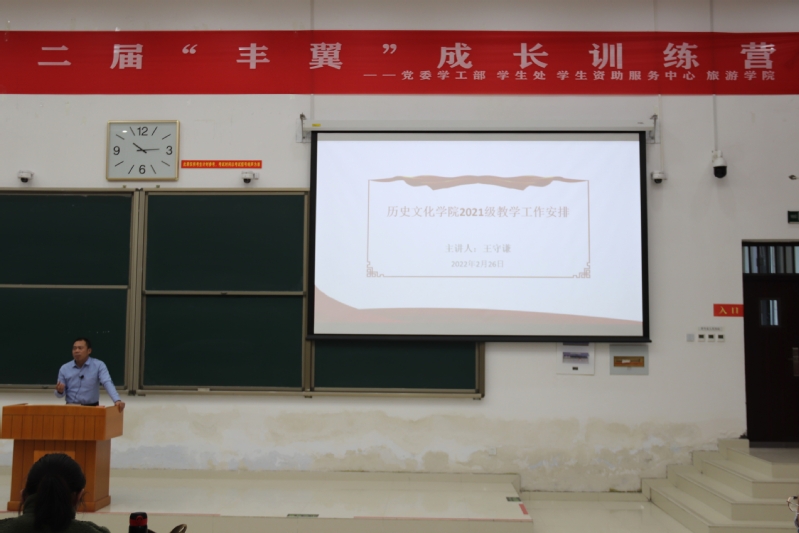 2022年2月28日历史文化学院于文昌楼102召开2021级教学工作安排大会。本次大会由王守谦副教授主讲,2021级历史文化学院全体学生参加会议。
