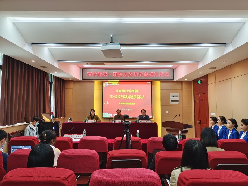 4月15日下午,商学院举行第一届校友奖助学金颁发仪式。我校校友与基金工作办公室、商学院相关负责人,辅导员和受资助学生于学院119报告厅参加仪式,校友代表、各年级学生代表线上同步参加了会议。仪式由商学院党委书记李志前主持。