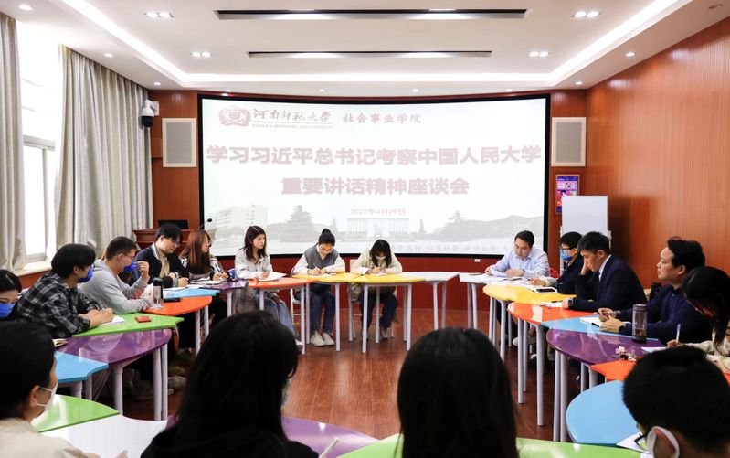 4月29日,社会事业学院在崇智楼503室召开学习贯彻习近平总书记考察中国人民大学的重要讲话精神座谈会。学院领导班子、青年教师、各年级专兼职辅导员及学生骨干代表共三十余人参与本次学习座谈,会议由院团委书记田嘉玺主持。