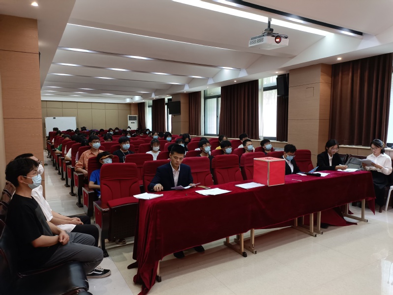 大会在激昂庄严的国歌声中拉开帷幕。会议伊始,学生代表通过举手表决的形式,审议并一致通过了王金龙宣读的《河南师范大学学生代表会议选举办法(草案)》,听取了候选人预备人选名单。随后,王金龙宣读填写投票的注意事项,由总监票人田育良主持填写选票及投票工作。本次学生代表选举会议本着公平、公正、公开的民主选举原则,全体学生代表严格依照规定的程序,在总监票人和监票人的监督下,通过无记名投票方式进行民主选举。在计票员清点并记录完选票后,由总监票人宣布投票结果。最终,推选出王金龙、王潇、田育良等21名同学当选河南师范大学第二十八次学生代表大会正式代表。最后,全体成员奏唱校歌,本次会议顺利结束。