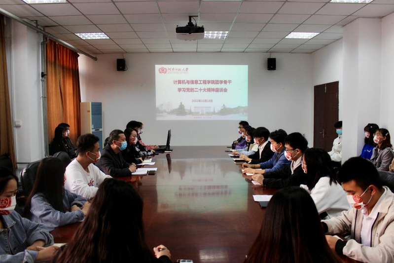 10月19日,计算机与信息工程学院在学院103会议室召开学习贯彻党的二十大精神团学骨干座谈会。学院相关负责人、辅导员以及团学骨干代表30余人参加座谈会。
