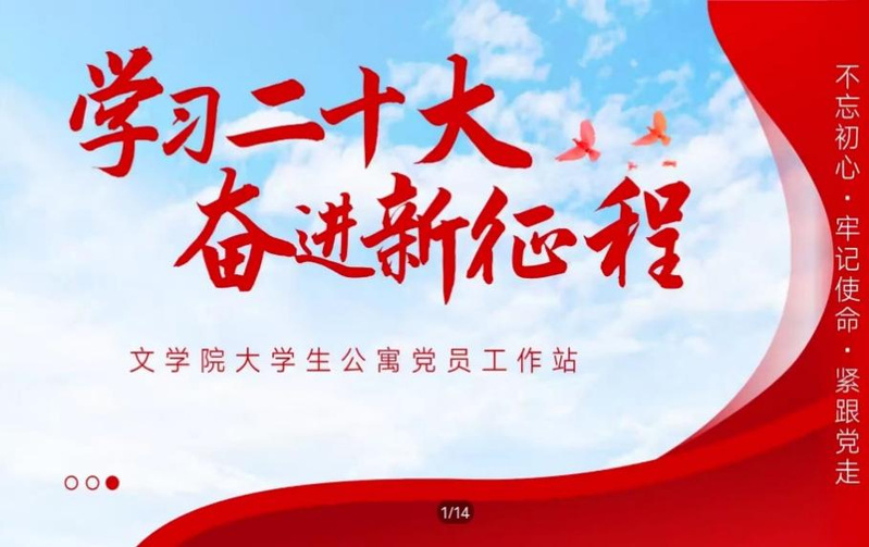 为响应党的二十大精神号召,凝聚思想力量,10月22日晚,文学院大学生公寓党员工作站组织开展二十大精神学习暨导航工程动员会。大学生公寓党员工作站全体成员和2022届全体导航员参会,2021级专职辅导员陈培超主持会议。