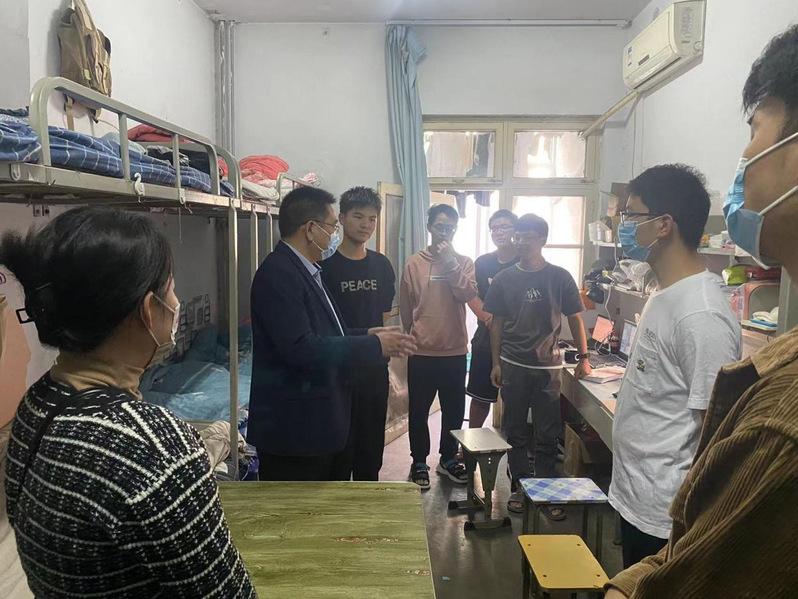院党委副书记朱国超,研究生辅导员孙亚利来到宿舍楼走访慰问,以亲切和蔼的话语迅速拉近了与同学们的距离,大家纷纷放下了顾虑,畅所欲言。在听了同学们的反馈之后,朱国超了解到学生饮水需求和餐饮需求。并指出,希望学们能以良好的心态对待此次疫情防控,克服困难,有任何问题和需求要及时与老师和学院沟通,学院将会尽全力满足学生生活上的需求,并再三强调每位同学背后都有学院和老师们的支持,让同学们备感温暖!