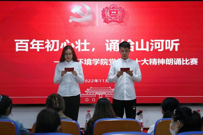 为庆祝党的二十大胜利召开,深入学习党的二十大精神, 进一步丰富学生校园文化生活,筑牢青年学子信念根基,11月6日环境学院团委在实训楼1509报告厅成功举办“百年初心壮,诵给山河听”主题诵读比赛。学院兼职辅导员刘铠钰、王珂,校演讲与口才协会负责人栾卓瑛、学院学生会主席团成员等担任评委,学院近50名学生代表观摩比赛。