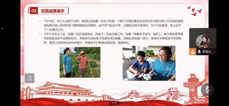 为深入学习贯彻习近平总书记关于青年工作的重要思想和“三农”工作的重要论述,引导广大青年学史明理,11月9日晚,数学与信息科学学院于线上举办“学习二十大,永远跟党走,奋进新征程”三下乡实践团队成果展示活动,暑期“三下乡”全体实践队员参与其中。