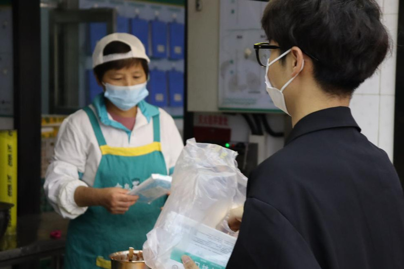 当学院学生递送口罩给东苑餐厅一楼“嘿小面”的任叔叔时,任叔叔满怀感动,同时坚定地说:“感受到了同学们对我们的关心,如今,我们更要在自己的岗位上做好自己的本职工作。”