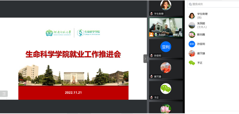 为帮助毕业生准确有效地确定就业方向,持续推进学院毕业生更充分、更高质量就业。11月21日下午,生命科学学院线上召开毕业生就业工作推进会,毕业年级辅导员参加会议,会议由学院党委副书记朱国超主持。