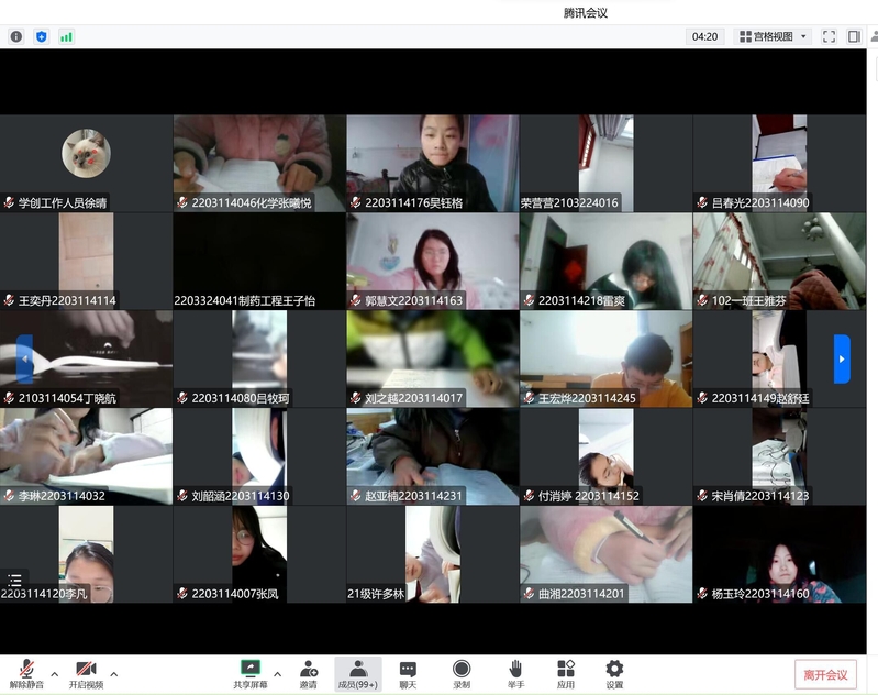 开学考试将近,为帮助学生巩固专业知识,不断提升学习自觉性和自我管理能力,2月7日至12日,化学化工学院于腾讯会议线上平台举办“云上自习室”活动,2020级、2021级、2022级本科生参与其中。