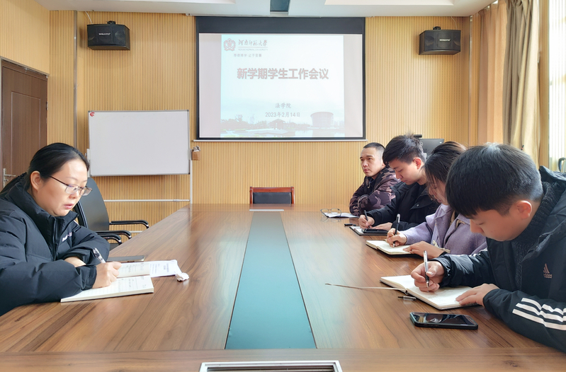 新学期,新气象。为进一步贯彻落实立德树人根本任务,谱写“三全育人”合奏曲,2月14日上午,法学院在崇法楼303室召开新学期学生工作会议,总结上学期学生工作情况并部署本学期重点工作。会议由学院副书记田月红主持,全体专职辅导员参会。