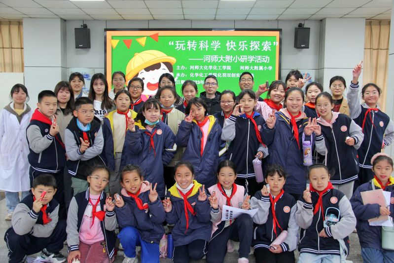 为拓展小学生的视野,培养小学生的实践能力,带领他们领悟化学魅力,4月4日上午,在学院团委的大力支持和密切关怀下,化学化工学院在化学北楼N105举办“玩转科学,快乐探索”河师大附小研学活动,学院化羽双创实践基地志愿者和河师大附属小学学生代表共同参与。