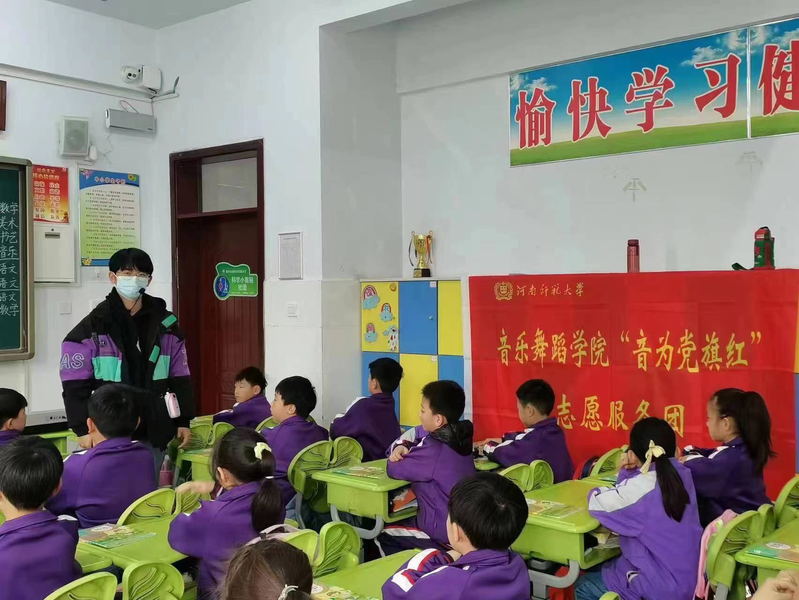 志愿服务团相继走进新中大道小学、育才小学、新乡市第七中学等15所学校,开展文艺志愿服务活动,助力打造特色音乐课堂。活动中,志愿者运用所学知识和技能,为学生们讲解民族乐器的演奏技巧及演奏风格、西方乐器的分类及代表乐器、歌曲演唱基本技巧及传统戏曲的唱腔、板式、咬字,展演和教唱经典曲目、爱国歌曲等,培养中小学生音乐兴趣爱好,提升他们艺术修养和综合素质,志愿者们也获得了实践体验。