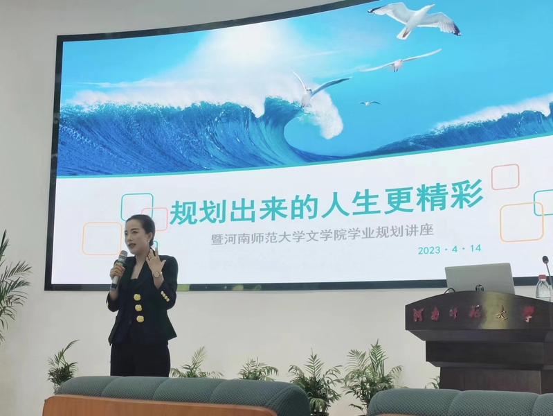 为帮助大一学生合理规划自己的大学生活,认真思考个人的未来职业规划,4月14日上午,文学院邀请新乡市红旗区政协委员、新乡市知联会理事、新乡市新联会理事、茱莉英语创始人焦丽丽为大一学生做题为“规划出来的人生更精彩”的讲座。