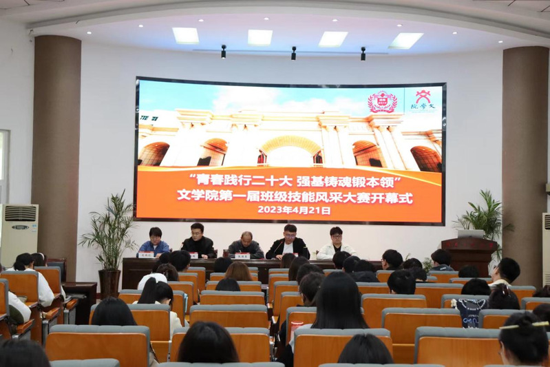 为深入学习宣传贯彻党的二十大精神,切实引导文学院学子接续弘扬河南师范大学的优良学风和奋发精神,提升学生专业素质和能力。4月21日上午,文学院在崇文楼一楼报告厅举办“青春践行二十大,强基铸魂锻本领”第一届班级技能风采大赛开幕式。文学院院党委副书记张颜勇及师生代表共同参与本次活动,活动由2021级辅导员陈培超主持。