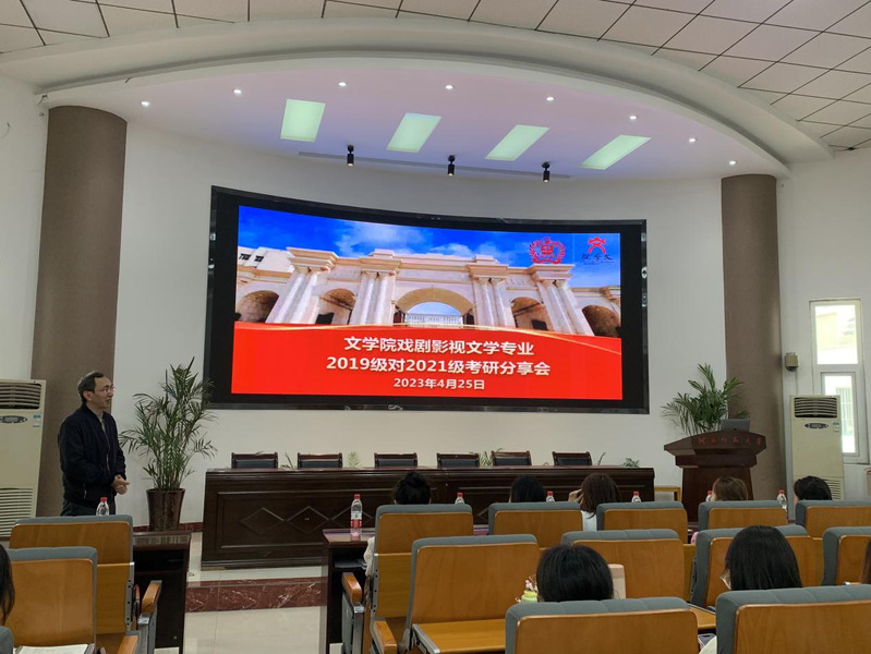 为加强学院学风建设,帮助低年级学生树立学习目标,做好学业规划,文学院开展2021级各专业考研经验分享会。4月25日下午,戏剧影视文学专业专场在崇文楼一楼报告厅开展,由专业班主任原小平老师主持,成功考取研究生的2019级七名同学进行经验分享。