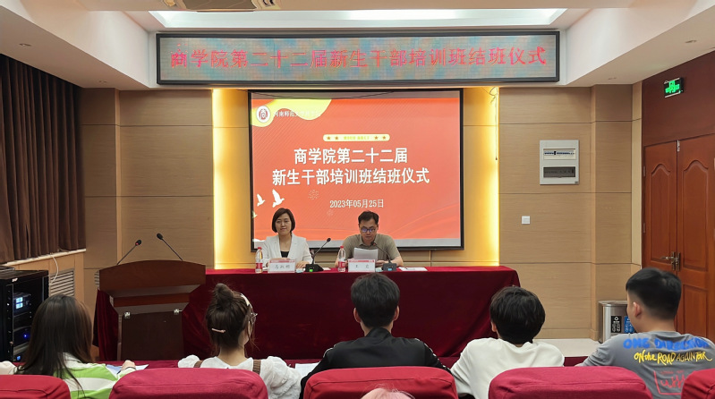 奋斗点亮青春,责任担当未来。为进一步强化学生干部队伍建设,提升全方位、全过程育人成效,5月25日中午,商学院于119报告厅举办第二十二届新生干部培训班结班仪式。学院相关负责人及第二十二届培训班全体学员参加此次活动。