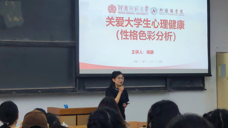 为丰富学生心理知识,进一步提升学生的心理素质,帮助学生更加科学全面地了解自己,外国语学院于5月26日在文渊楼418教室举办“关爱大学生心理健康(性格色彩分析)”主题讲座,本次讲座由学院教师杨静主讲,外国语学院2022级辅导员和学生共同参与。