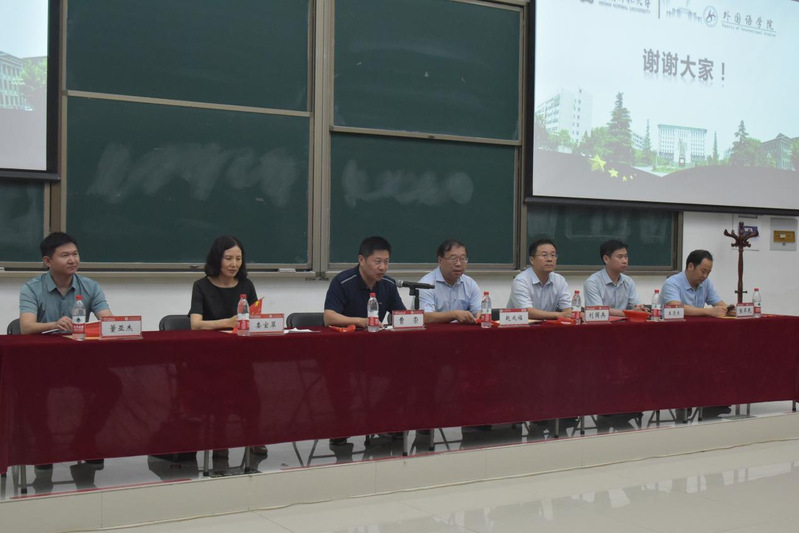 为深化全体本科新生对大学新阶段的认识,营造良好的开学氛围,激励全体师生以满腔的热情、饱满的精神投入到新学年的学习和工作之中,河南师范大学外国语学院于9月13日晚在文昌楼102成功举办2023级新生开学典礼。学院党委书记赵成福、院长刘国兵、副院长王清杰、娄宝翠、张军民、董亚杰出席典礼。各院系主任及教师代表、院辅导员及2023级全体本科新生参与此次开学典礼。本次典礼由院党委副书记曹崇主持。