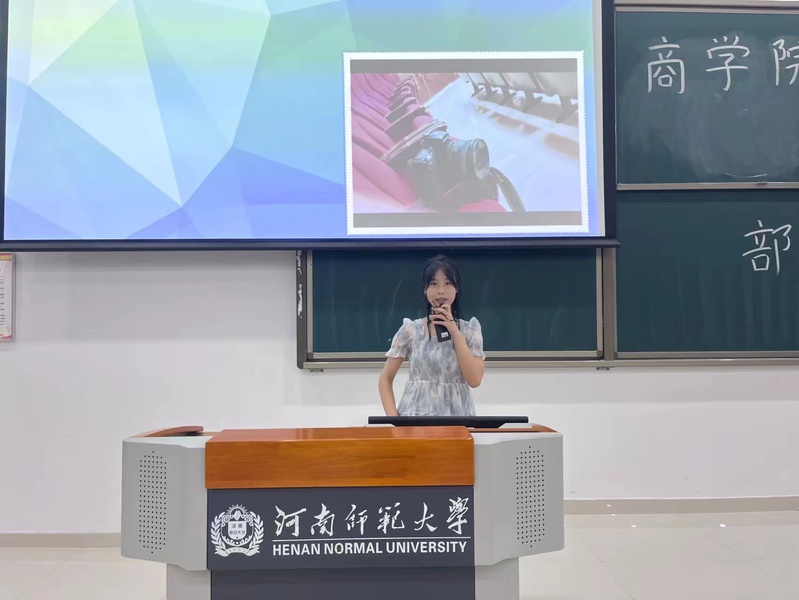 会议伊始,商学院团委副书记解宇晨同学为本次会议作开场发言。她以“态度”为核心,希望2023级新生对组织态度端正,对工作积极热爱,对自己定位清晰,在新学期、新生活中找准目标、精准定位,加入心仪的部口。随后,各部口用幽默风趣的语言和炫酷多彩的PPT带领同学们详细了解各部门的主要职能、日常工作、招新要求以及部门风采。团委宣传部结合部口特色,采用新颖的新闻播报形式,以客观清晰的条理独树一帜;网络部则采用精彩纷呈的快闪开头,彰显部口的技术特色,瞬间抓住观众眼球;院社联也带来精彩的舞蹈表演,点燃了全场气氛。最后,商学院学生会执行主席闫嘉乐同学提醒新生以学业为重,在学习之余锻炼工作能力,鼓励新生勇于尝试,抓住机会,度过一个多姿多彩的大学生活。