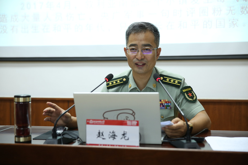 为了深入贯彻习近平强军思想,牢固大学生国防意识,加强爱国主义教育。9月18日晚,外国语学院在新五五四教学楼党校教室开展“铭记九•一八,吾辈当自强”国防专题教育活动。活动特别邀请新乡军分区党委常委、政治工作处主任赵海龙上校做报告。校党委学工部副部长赵焕兴,外国语学院党委副书记曹崇也同时出席活动。外国语学院师生代表参加讲座。