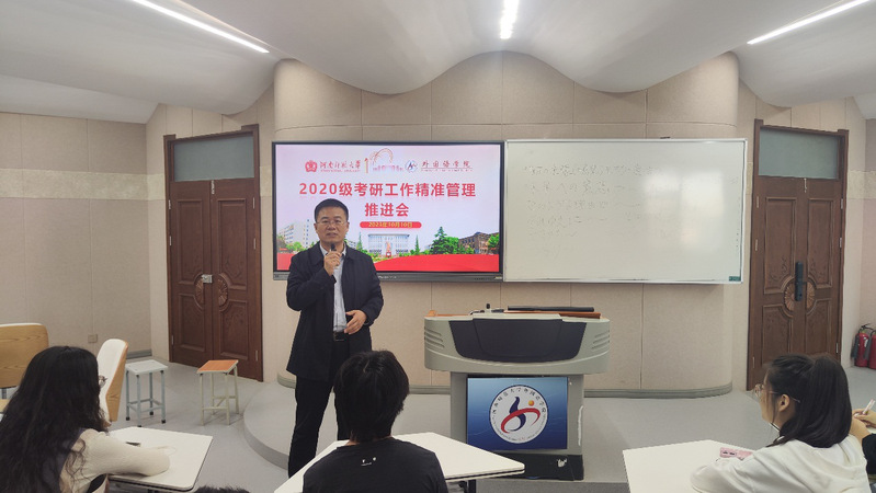 为充分调动2020级学生考研报名积极性,切实推进考研服务工作落到实处,扎实推进学院学风建设,10月10日上午,外国语学院在四楼智慧教室举行2020级研服务工作工作会议。外国语学院院长刘国兵出席会议并讲话,各班级考研服务工作具体负责人参加会议。会议由2020级专职辅导员彭典范主持。