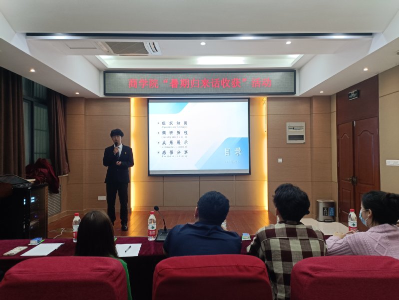 为深入总结暑期“三下乡”社会实践工作,巩固暑期调研成果,交流共享实践经验,10月15日下午,商学院于学院119报告厅举办“暑期归来话收获”活动。商学院团委负责人郭琛昊、学生会相关负责人及全体队员参加此次活动。