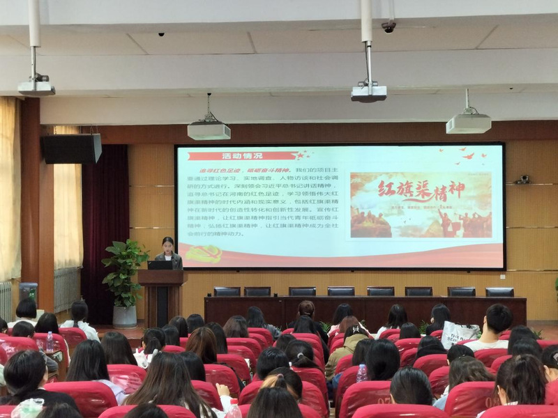 暑期社会实践已经结束,“三下乡”各团队暑期活动取得了丰硕的成果,在本次会议上总结活动经验,进一步发挥先进典型的示范引领作用。会议伊始,七个“三下乡”团队分别通过PPT的演示展示了本次活动的社会实践成果,同时对暑期社会实践活动进行宣传,鼓励学生们积极参与。接着,返家乡,向基层报道学生分享自己在活动中成长的感受和心得。最后,由团委评委团对各个团队从PPT制作、实践创意与创新、实践活动的影响力等五个方面进行打分。本次会议赢得了观众们的热烈反响,许多参会学生都表示在这次会议中收获颇多。