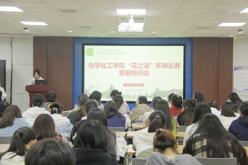 为提高广大学子的逻辑思维能力、语言表达能力和临场应变能力,助力化学化工学院特色育人活动“花之语”杯辩论赛顺利进行,10月16日晚,化学化工学院于化学北楼五楼会议室举办了相应的赛前培训会,2021级本科生优秀辩手杨紫艺、队伍指导代表及70余名“花之语”杯辩论赛初赛选手参与了本次会议。