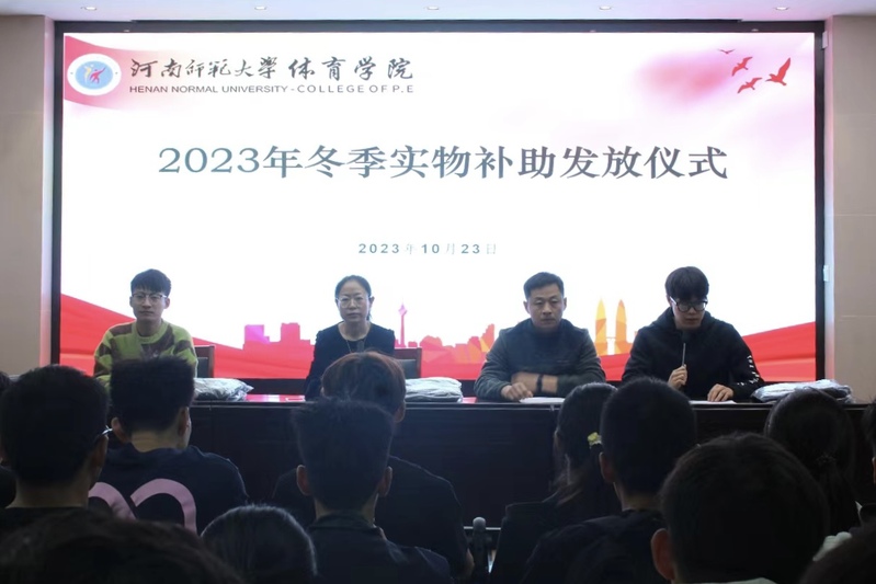 为落实学校资助政策,保证家庭经济困难学生顺利过冬,10月23日中午,体育学院在东区学院一楼会议室举行2023年冬季实物补助发放仪式。学院党委副书记王芳、相关负责人以及受助新生参加了本次活动。仪式由院团委书记刘广宣主持。