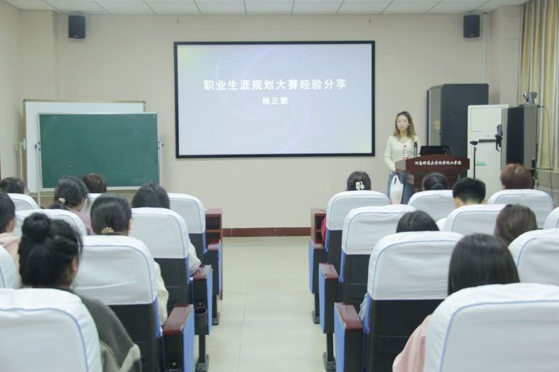 会上,杨正歌围绕职业规划的意义和重要性、职业规划大赛的规则和要求、参赛思路和技巧等方面展开培训,并就大赛文件中的时间安排、三级制度、比赛流程等向学生进行了详细阐述与讲解。随后,她从自我认知、职业认知、职业目标与路径设计、规划与实施计划、评估和调整等方面对职业生涯规划书的撰写做出了详细指导,并强调规划书应兼具结构性、逻辑性与个性。会议最后,杨正歌着重强调了基于自身经历总结出的几点经验:一是要严格遵守展示时间;二是坚持付出;三是导入精彩;四是提供相关证明材料;五是预设突发状况并冷静解决;六是做好备选方案。